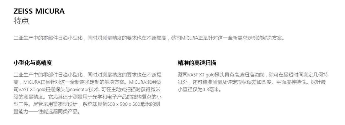 ZEISS MICURA – 小尺寸零件测量获最高精度,ZEISS MICURA解决方案的开发,专门 针对工业生产中零部件加工变得越来越 紧凑,而精度要求不断提高的新需求。